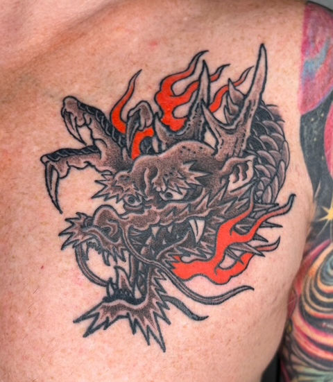 Jake is a progressive artist who prioritizes the balance between respecting tradition and living in the modern world. As a progressive artist, he has crafted paintings that fuse modern culture with traditional Japanese motifs, showcasing pieces like biomech Fujin and biomech Raijin, along side Ninja Turtle-inspired backpiece designs featuring iconic characters such as Shredder, Master Splinter, and April O'Neil. While creating these innovative pieces, he still makes time to make classic traditional Japanese paintings. Outside of tattooing, Jake is a triathlete.